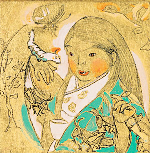 2009年講談社創業100周年企画の書き下ろし100冊のなかの1冊として5月に『山本容子の姫君たち himegimi@heian 』が出版されます。『不思議の国のアリス』をモチーフにした作品を制作したことがきっかけで、アリスという「少女」に興味を持った画家・山本容子が描く7人の少女たち。少女アリスは千年の時を軽々と超えて『更級日記』、『堤中納言物語』、『源氏物語』、『落窪物語』、『とりかえばや物語』、『竹取物語』に出てくる平安時代の姫君たちになり、最後は再び『鏡の国のアリス』の世界に戻ってきます。千年前の幽玄でリアルな世界を、金箔を貼った和紙に銅版画を刷ることで表現しました。山本容子が自身の幼少時代と重ね合わせながら、千年変わらぬ「少女」の魅力を美しい絵と文で綴る展覧会です。