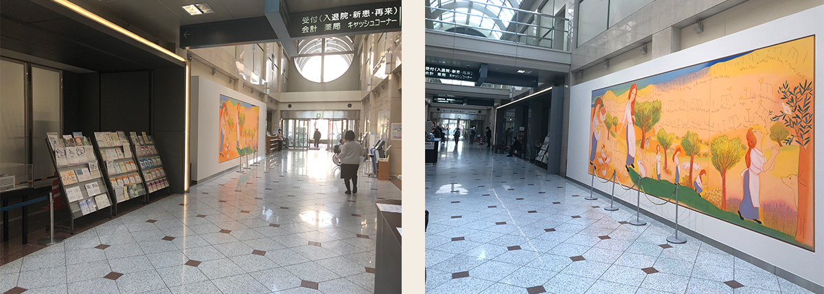 高松赤十字病院 西玄関壁画 《愛の小径》 アクリル画 縦2273×横6484mm